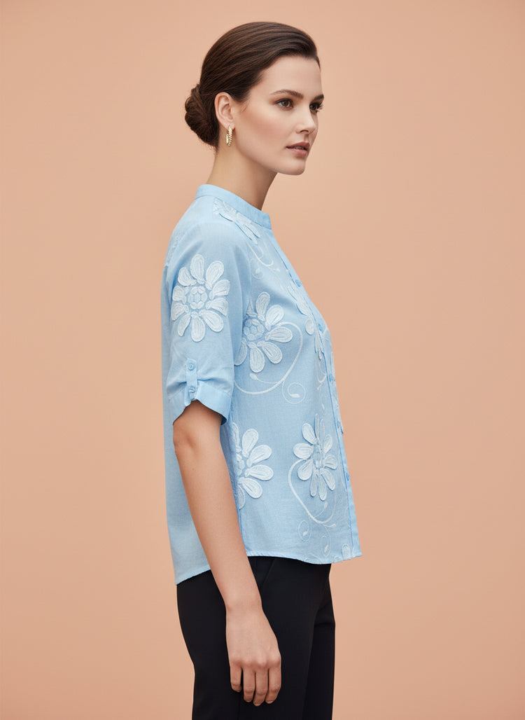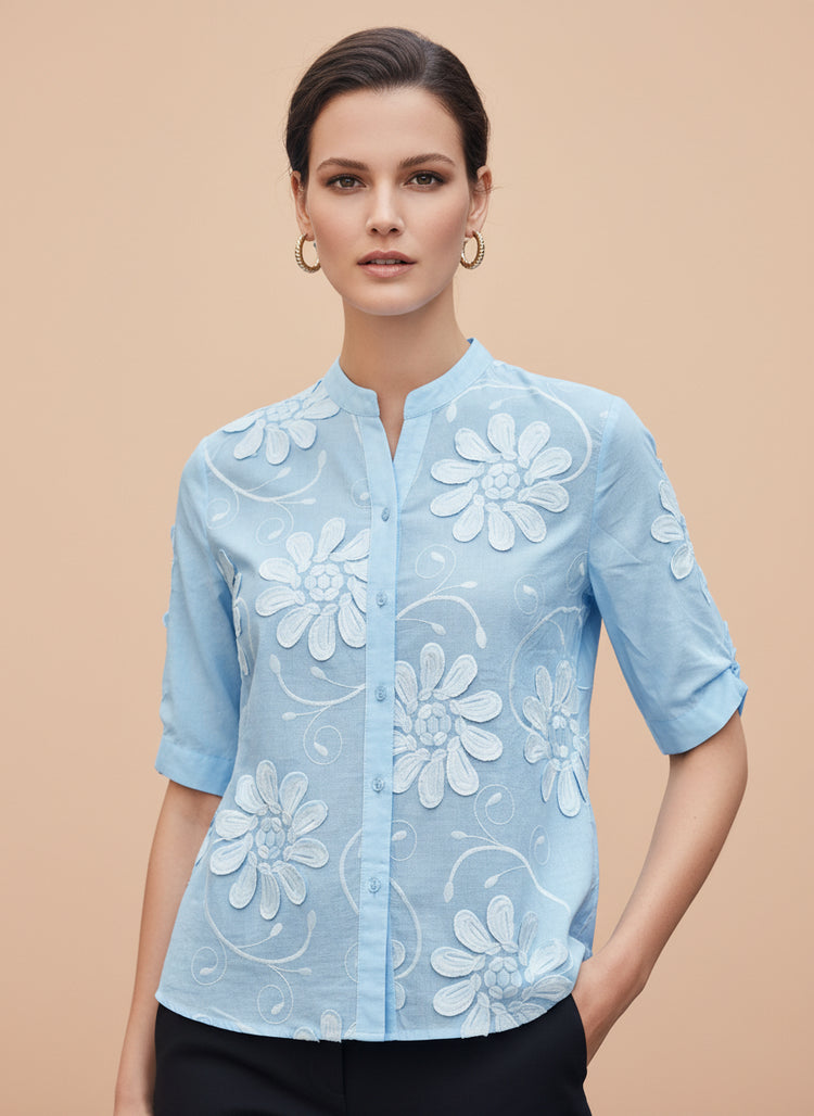 Luxury Floral Embossed Satin Top for Women