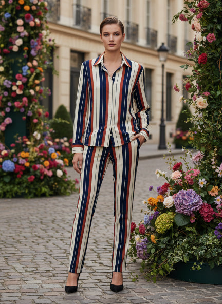 Elevate your wardrobe with the effortlessly chic Women's Premium Rayon Striped Co-ord Set. Designed for style and comfort, this set features a timeless vertical stripe pattern in bold yet sophisticated hues. The breathable rayon fabric offers a soft, flowy feel, making it perfect for all-day wear.