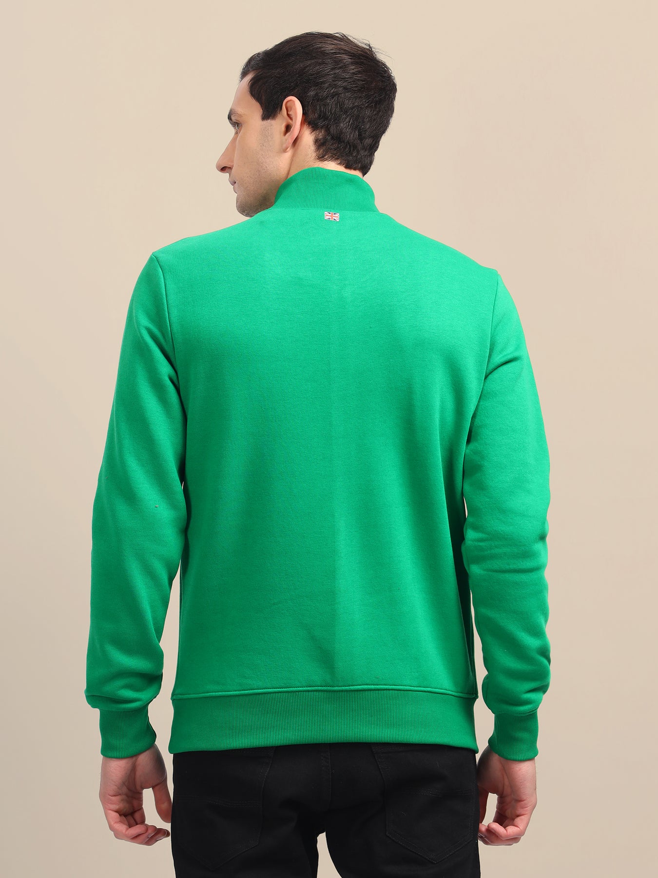 Amswan Men'S Green Solid Half-Zip Sweatshirt