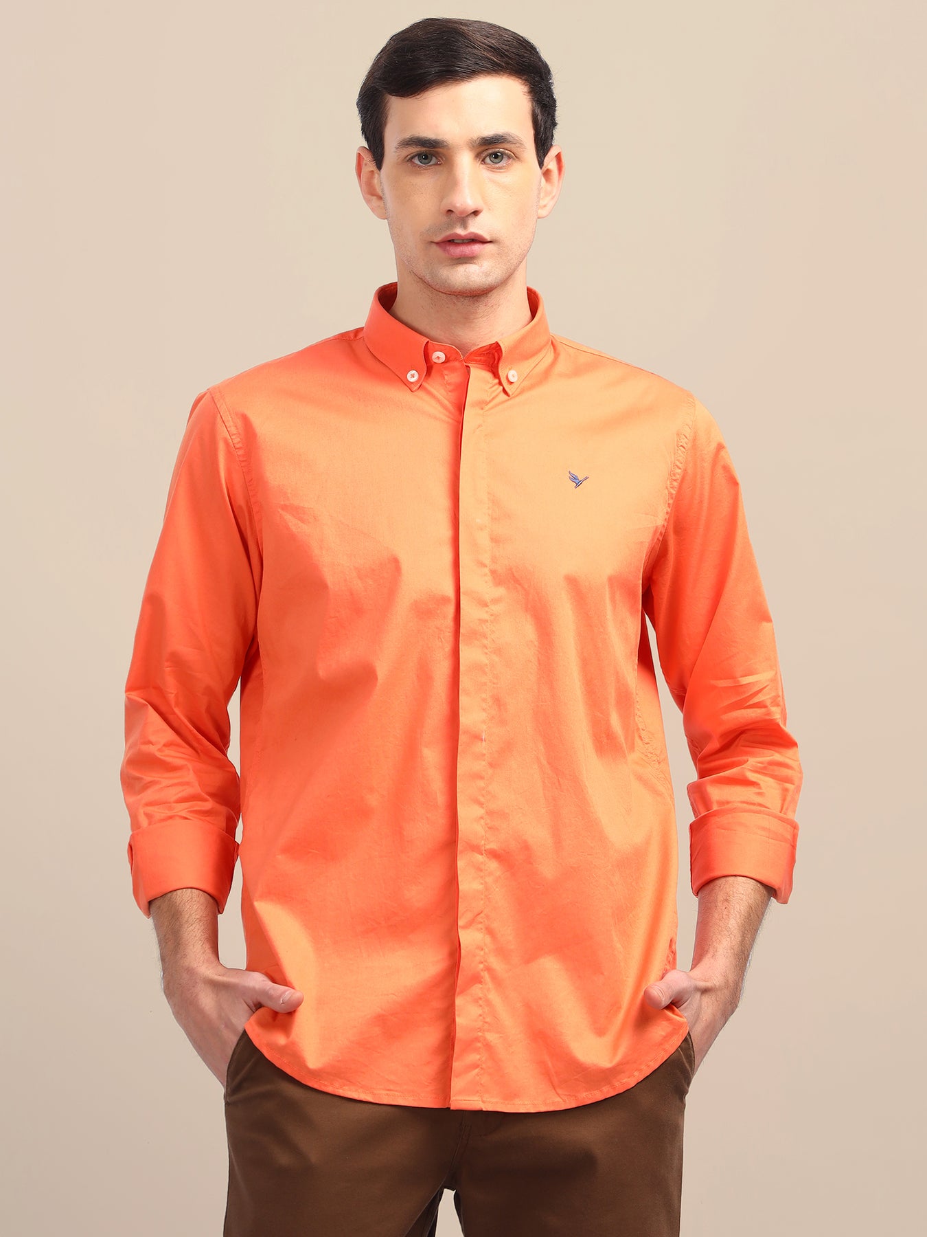 Orange Shirt With Premium Cotton Lycra