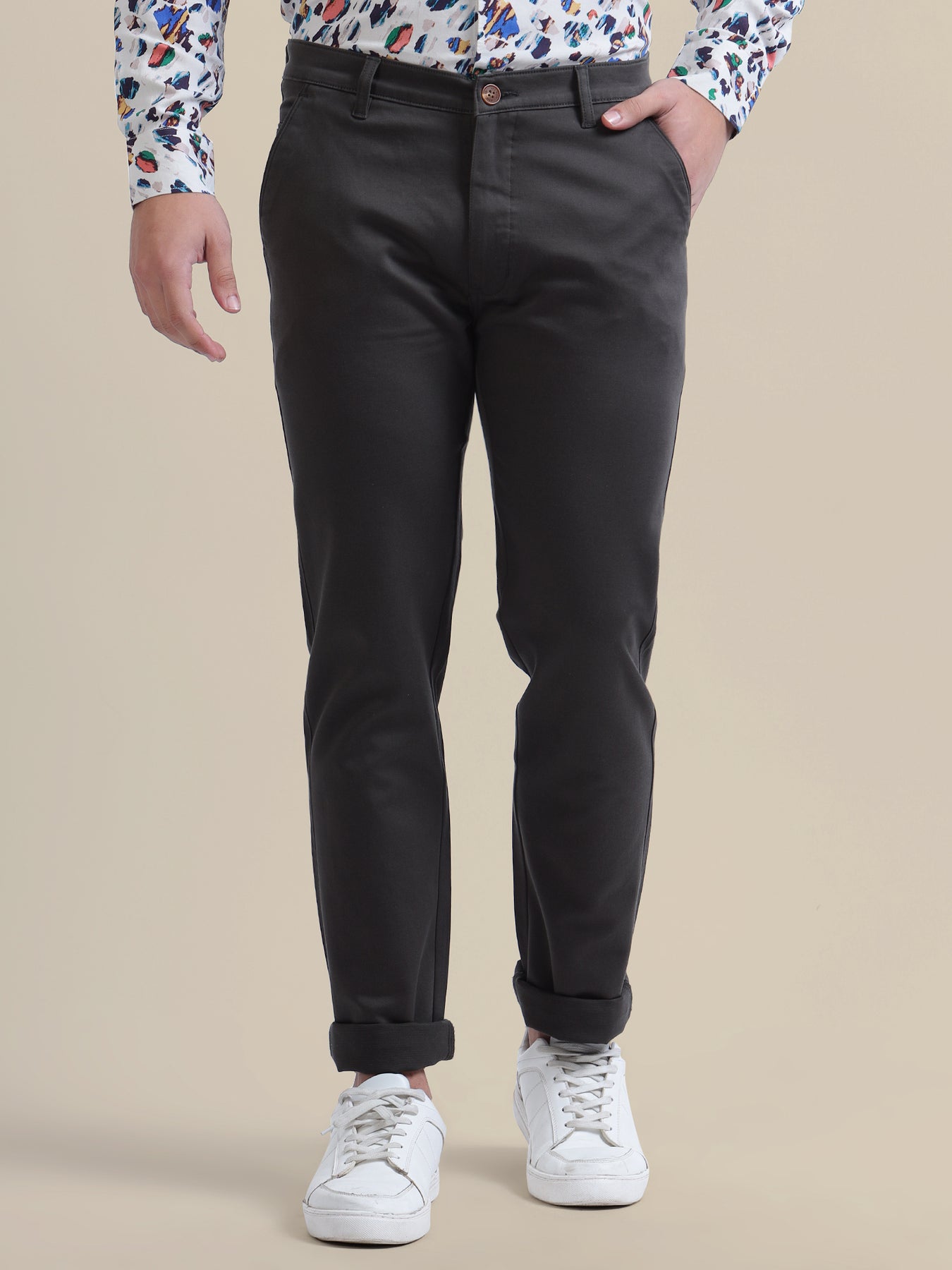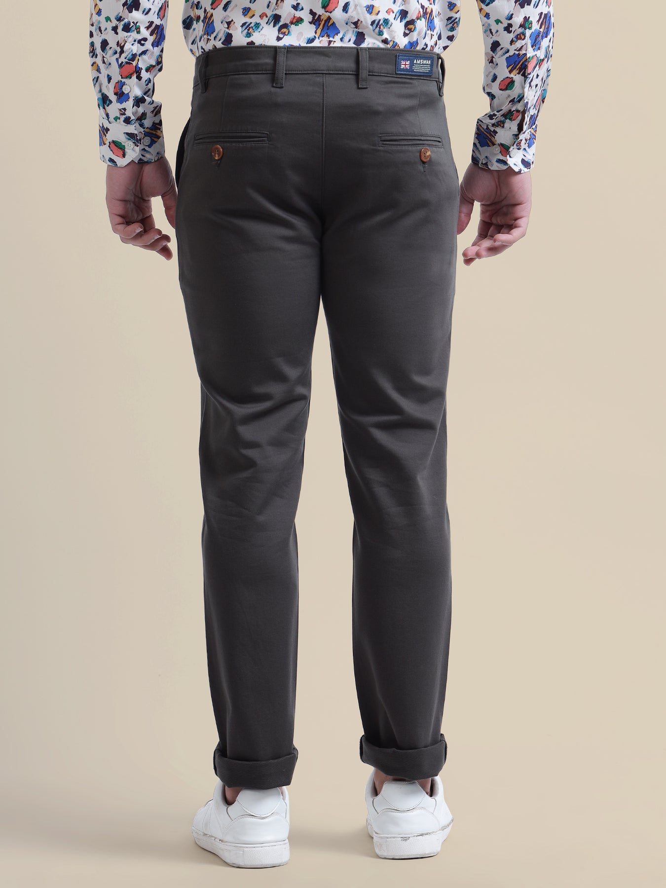Black Casual Trousers Solid Cotton Lycra Smart Fit