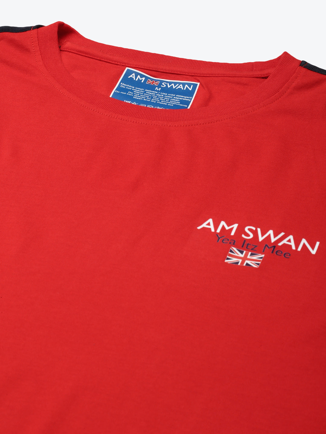 Get an uber-smart weekend look with this red logo T-shirt from Am Swan. This one is a stunning addition to your wardrobe. It is made up of premium quality combed cotton with a brand print on the chest.
