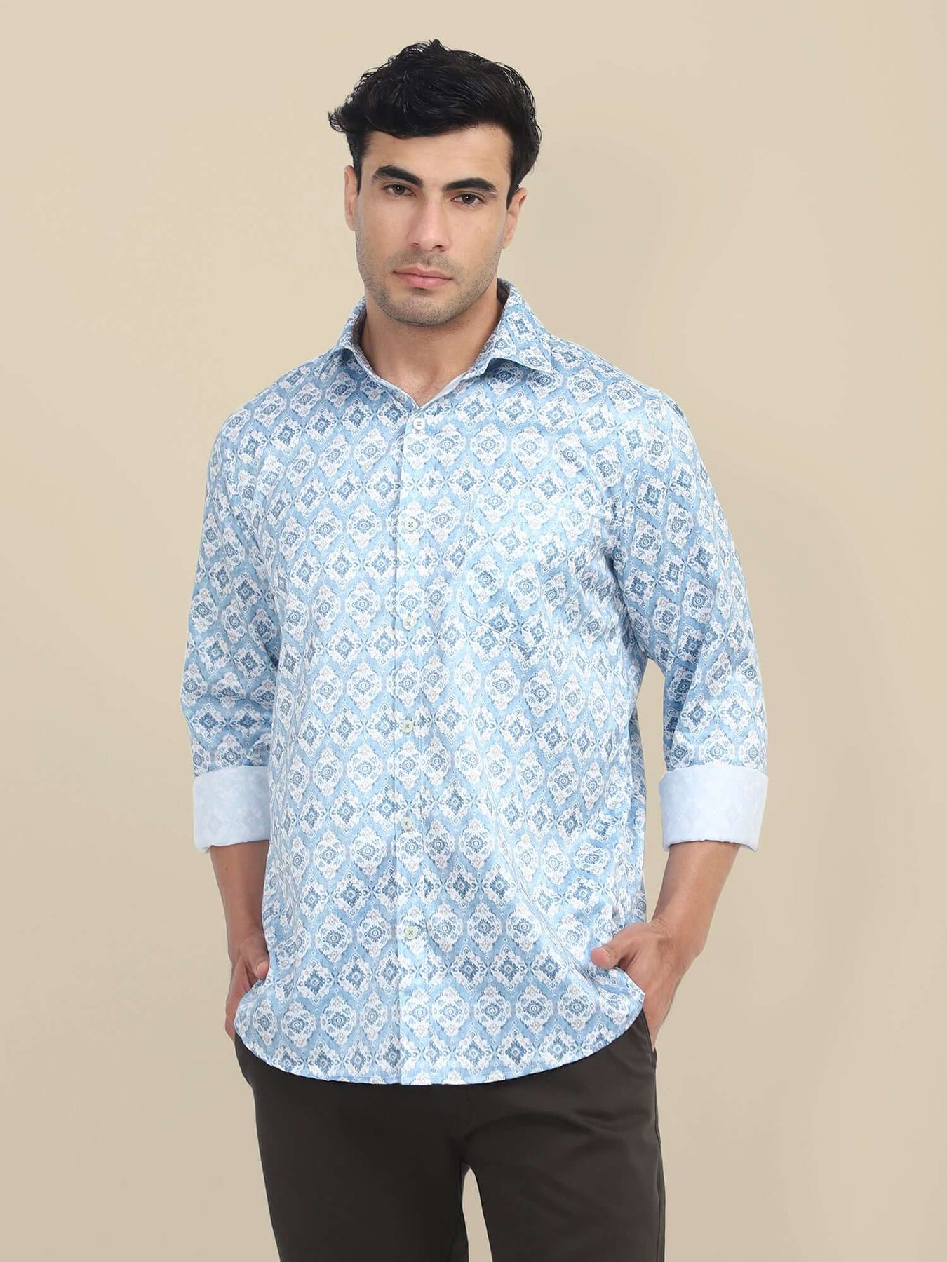 - Sky blue hue with digital print adds a modern and vibrant touch to your ensemble