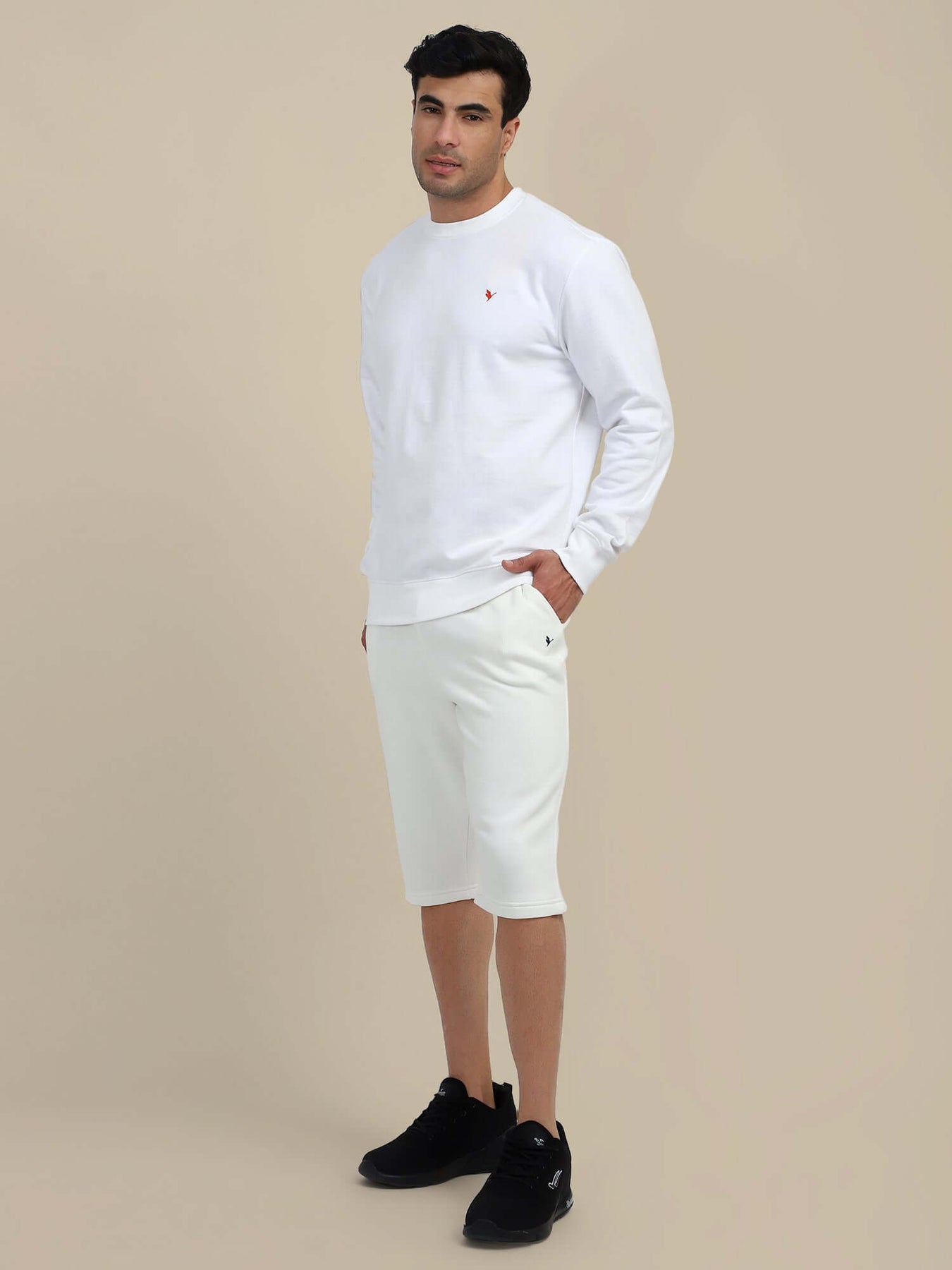 Men'S White Sweatshirt With Shorts Cord Set
