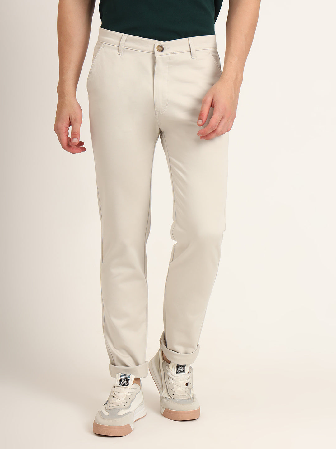 Premium Cotton Stretch Beige Solid Men'S Regular Fit Trouser