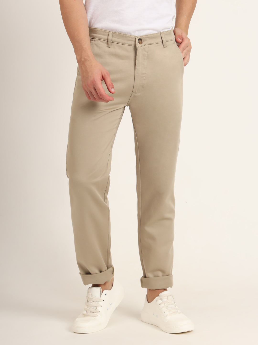 Premium Cotton Stretch Spanish Grey Solid Men'S Regular Fit Trouser
