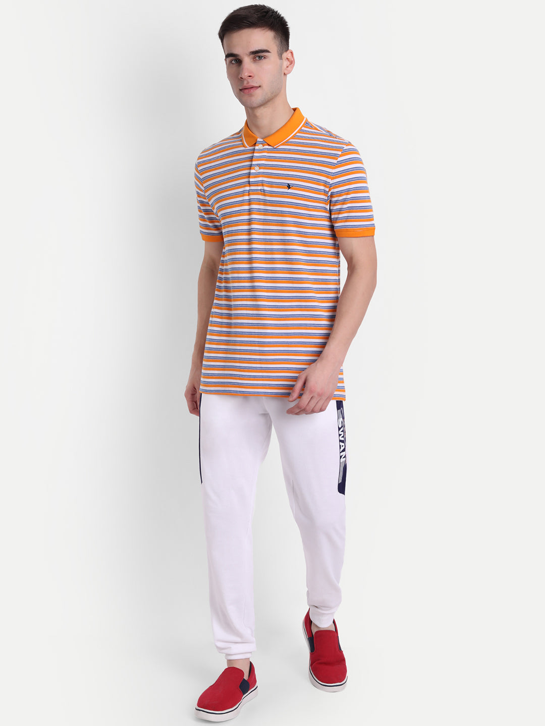 Premium Orange Cotton Striped Half Sleeve Polo