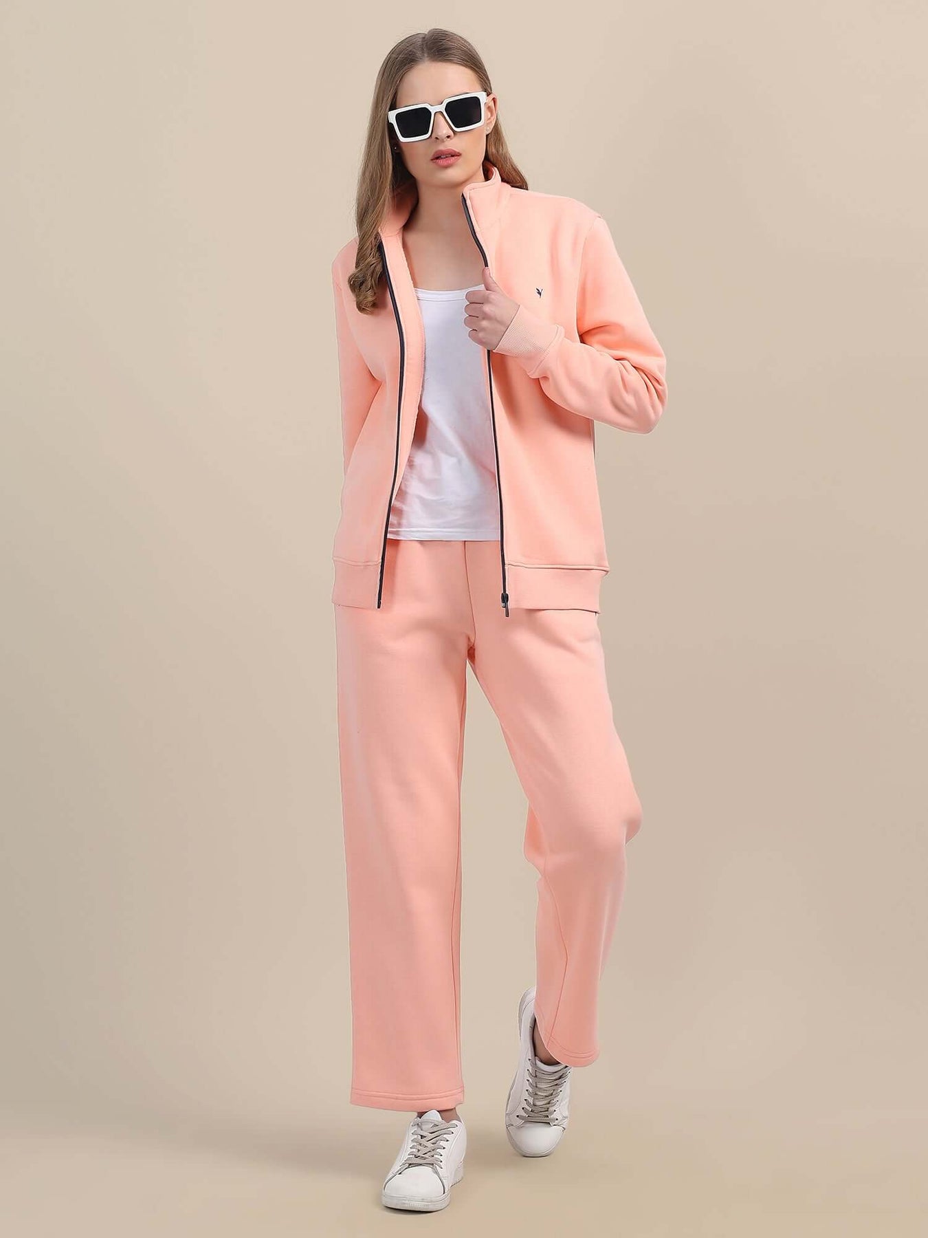 Amswan Premium Cotton Women'S Peach Zip-Up Sweatshirt