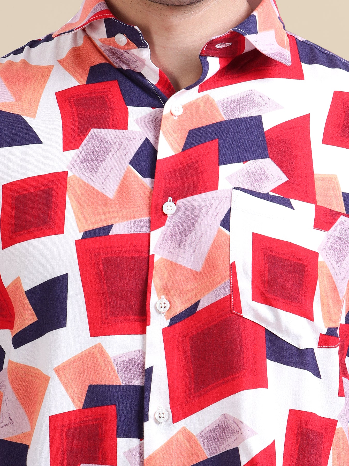 Men'S Premium Rayon Shirt With Red And Blue Print