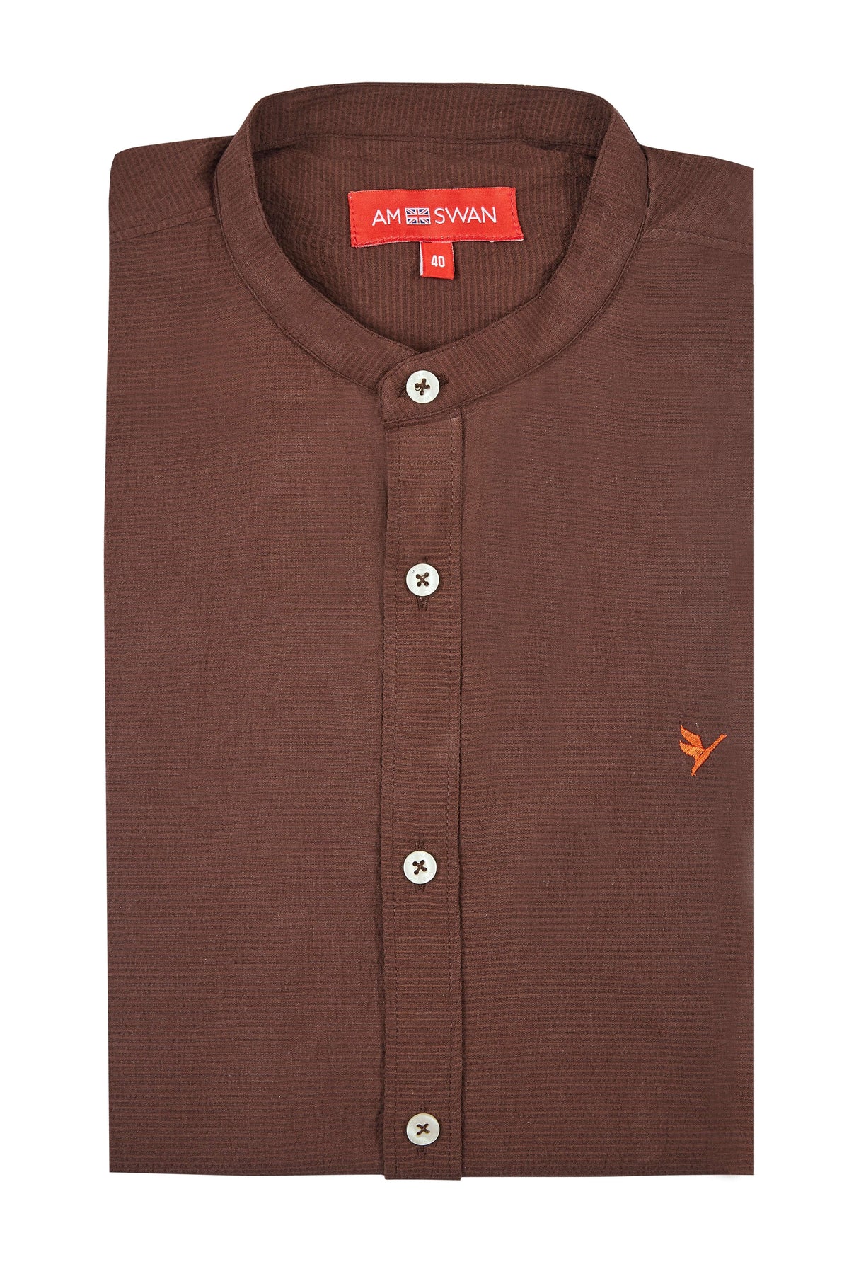 Premium Men'S Brown Crinkle Cotton Shirt - Mandarin Collar, Long Sleeves