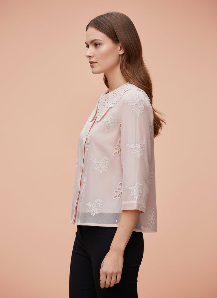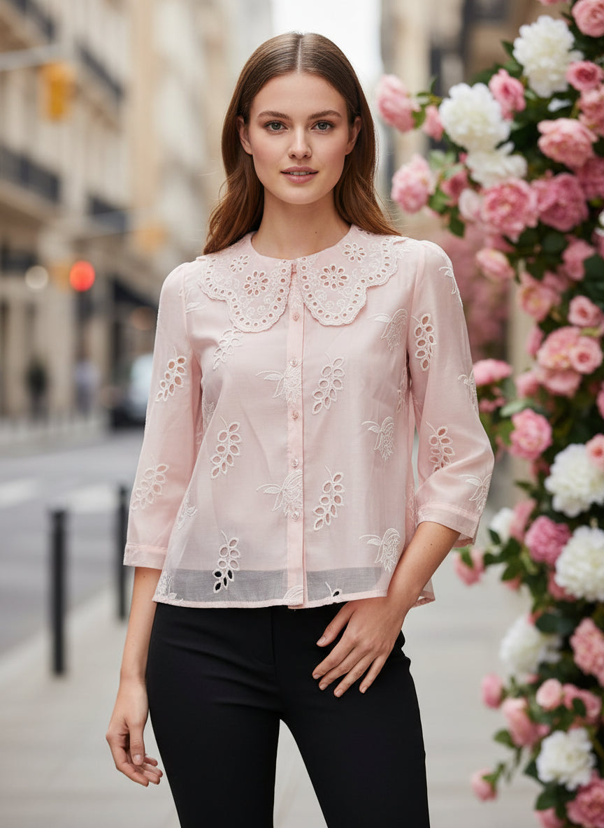 Luxury Embroidered Women’s Peter Pan Collar Top