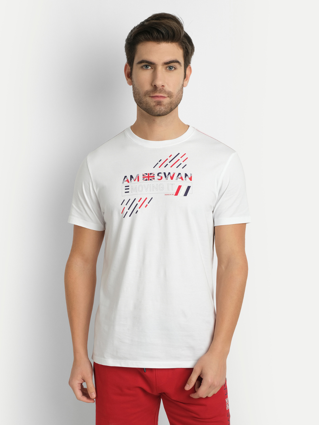 Elevate your casual style with the Amswan Cotton Men's Graphic White Half Sleeves T-Shirt. This t-shirt combines the classic appeal of white with a, offering a perfect blend of comfort and style. Crafted from premium cotton, it ensures a soft and breathable feel, making it an ideal choice for everyday wear.